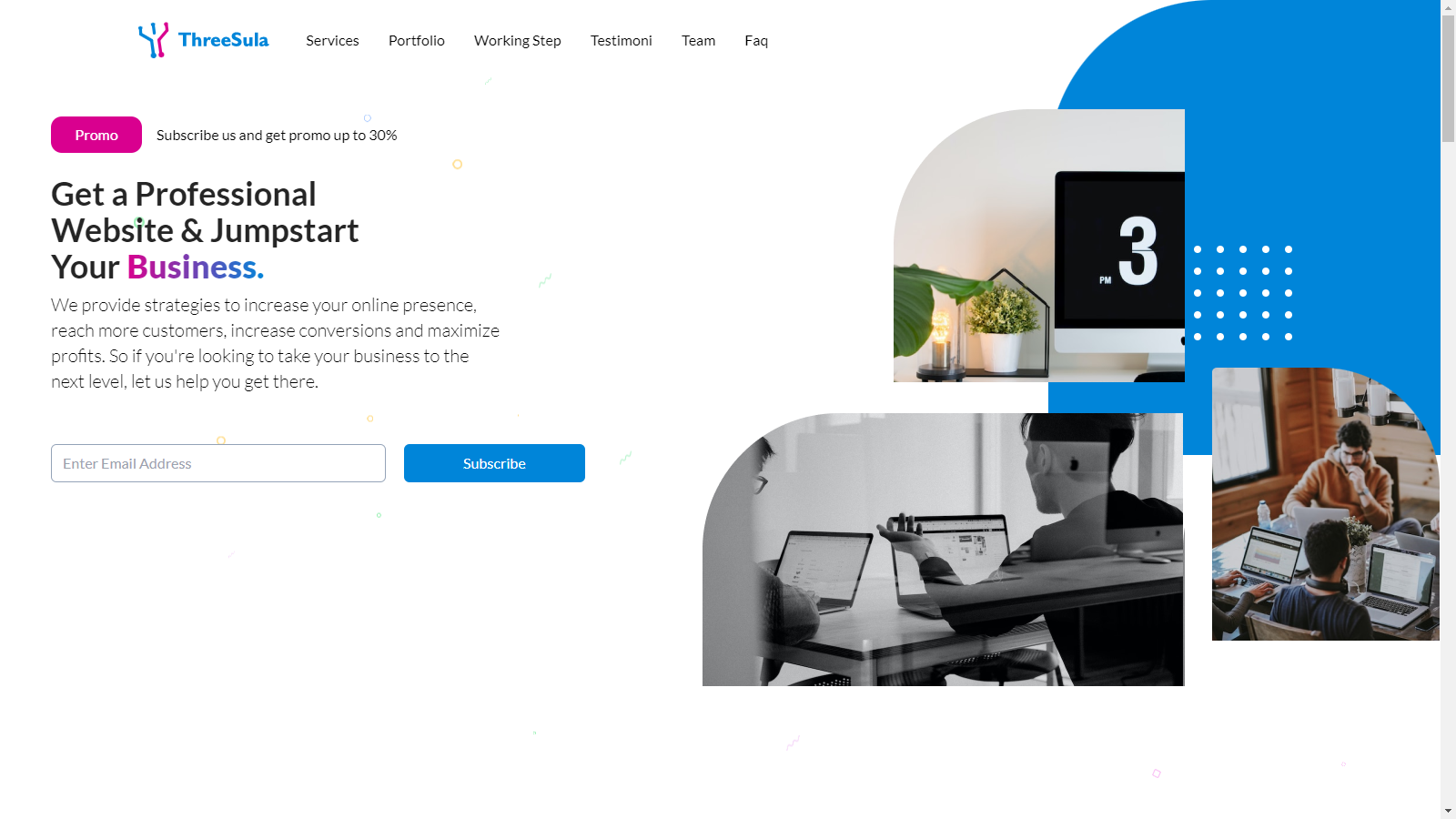 Threesula is a digital agency that offers website development and other services. Threesula's website is developed using modern technologies such as ReactJS, TailwindCSS and other front-end web development frameworks.